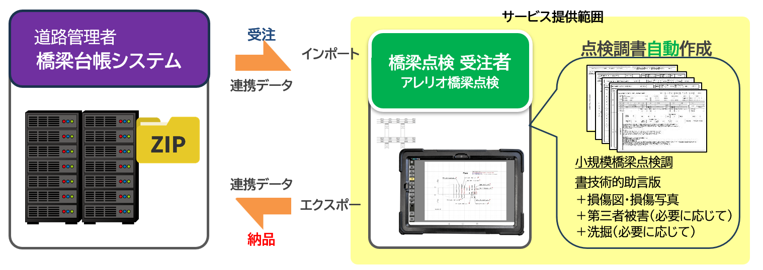 橋梁台帳システムから出力された連携デ一タをアレリオ橋梁点検に取り込む
