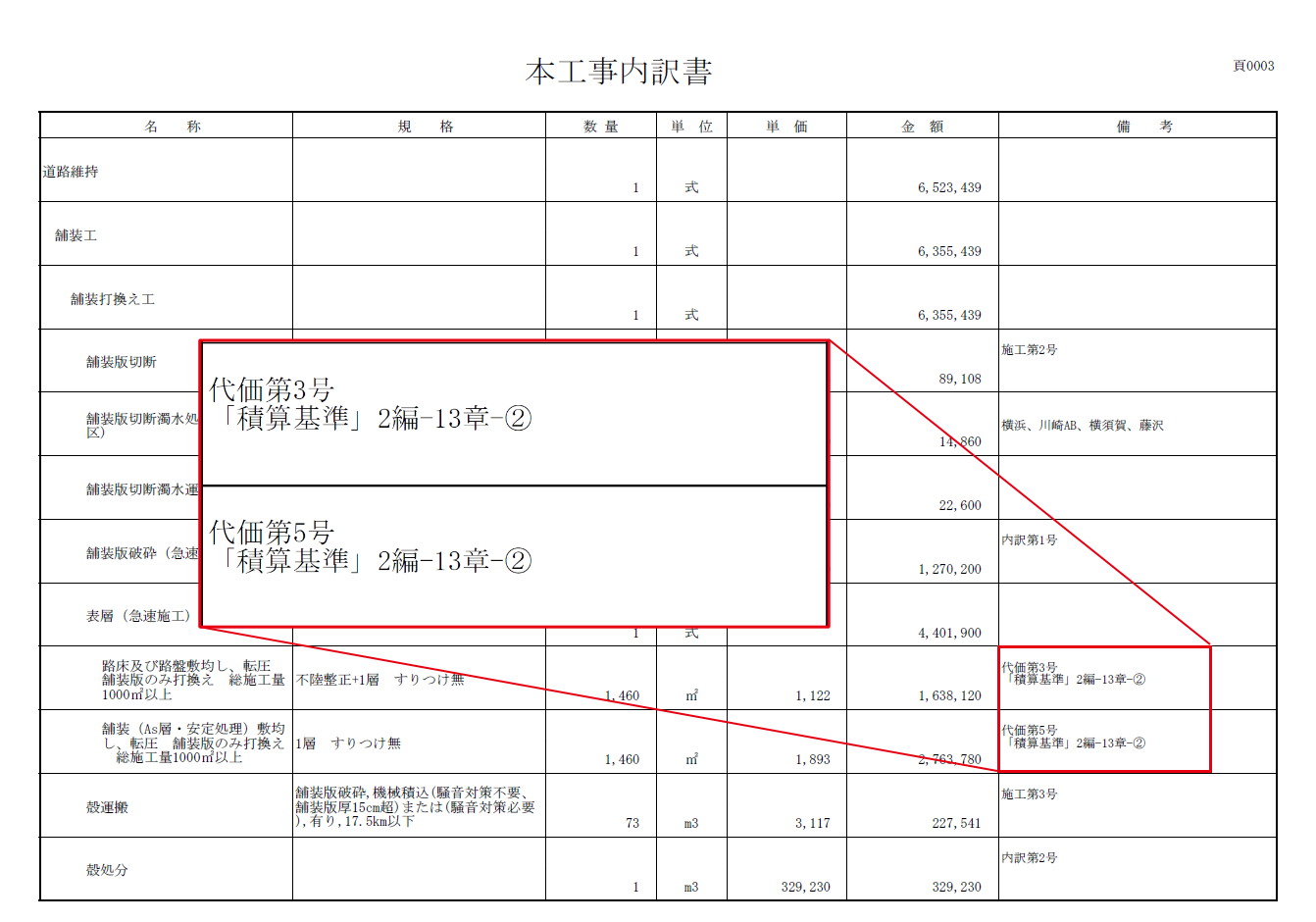 積算基準書、物価資料の出典を設計書に記載します。積算内容の確認時や会計検査時に効果を発揮します。