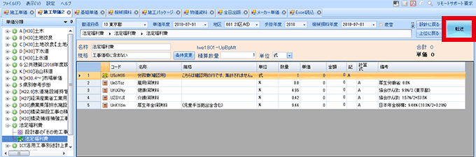 - 直接工事の労務単価を使用する場合、単価や金額は0円になりますが、そのまま転送してください。(設計書画面で単価や金額が計算されます)