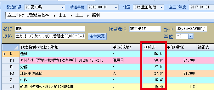 施工パッケージの適用年度によって構成比や条件が変わります。