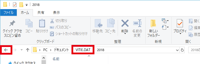 [←]または[VITIE.DAT]をクリックし、1つ上のフォルダへ移動します。