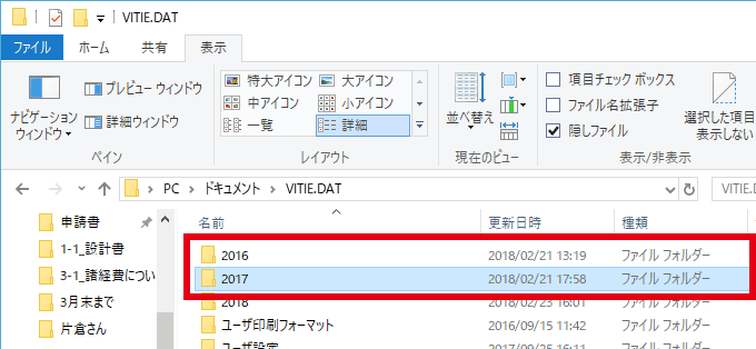 新年※2になるとVITIE.DATフォルダの中に自動的にフォルダが生成されるため、前年に作成した設計書は表示されません。
