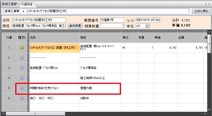 - ※画像は市場単価の代価表を表示しています。