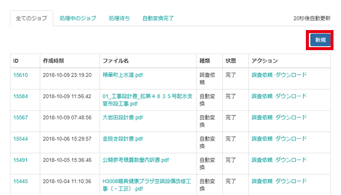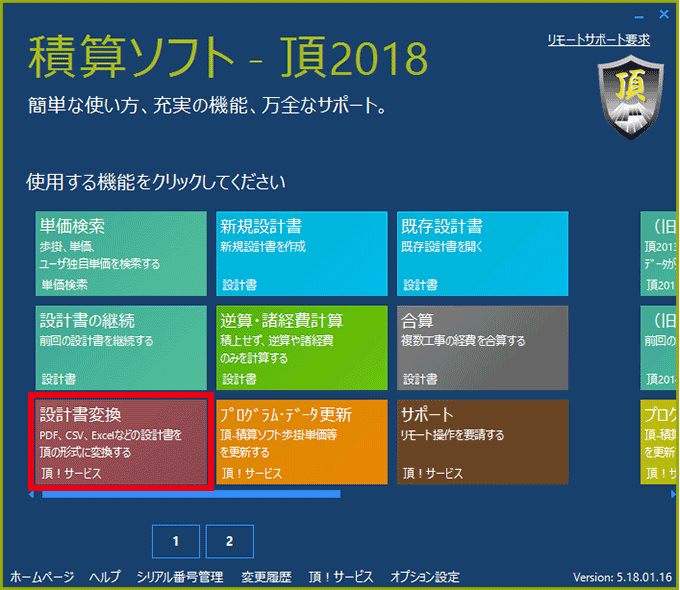 スタート画面で、[設計書変換]をクリックすると、頂!サービスの「設計書変換」ページが開きます。
