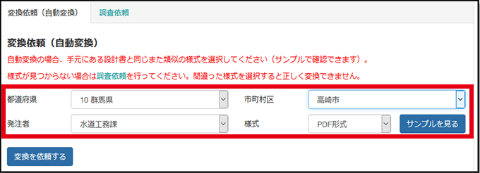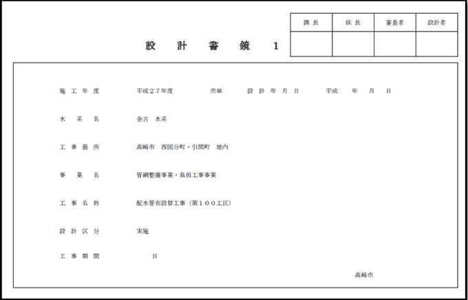 同じ市町村でも発注課によって、設計書の様式が異なる場合があります。市町村を選択した際は必ず発注者の確認をお願いします。