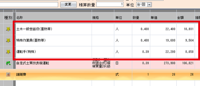 補正された労務単価は語尾に(亜熱帯)と入ります。