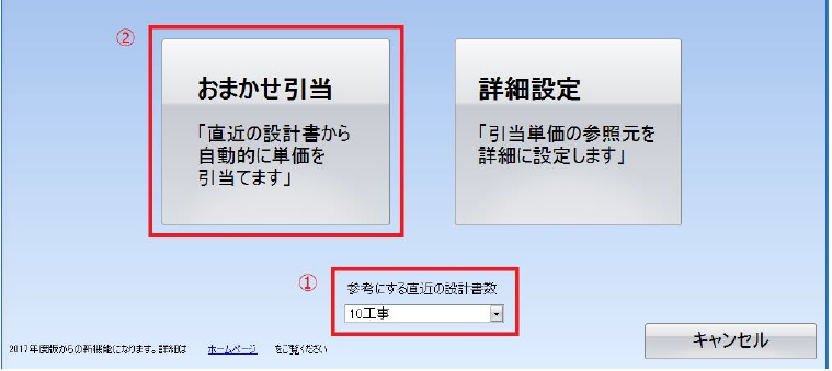 ① 引当てに使用する直近の設計書数を選択します。